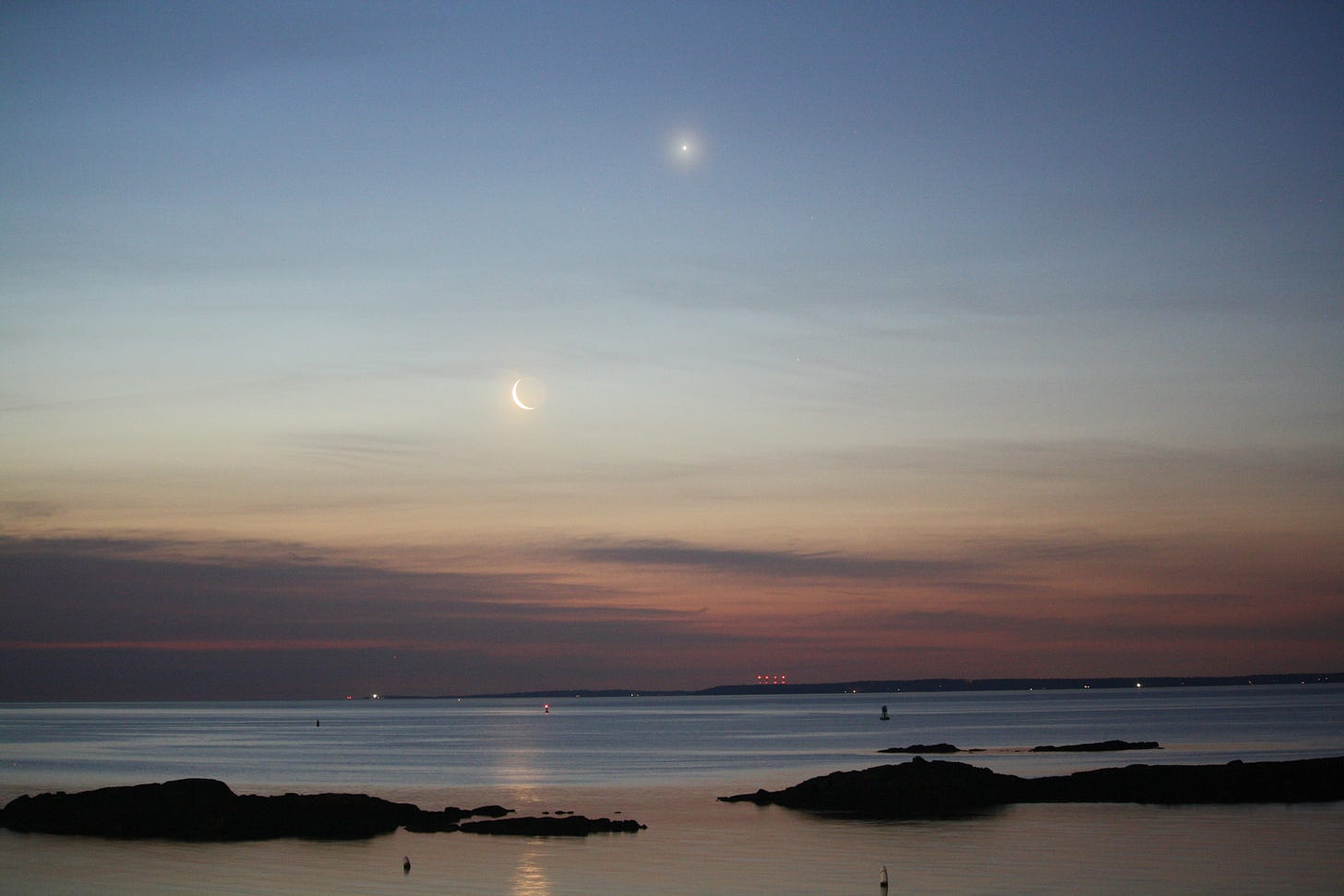 It was the much-ballyhooed ‘Smiley Face’ conjunction of the Moon, Venus and Saturn that got me up early to trek to Rye Beach with the Canon camera to get some shots. Yep, same place as the sunrise partial eclipse a month ago. Nobody else there this time.