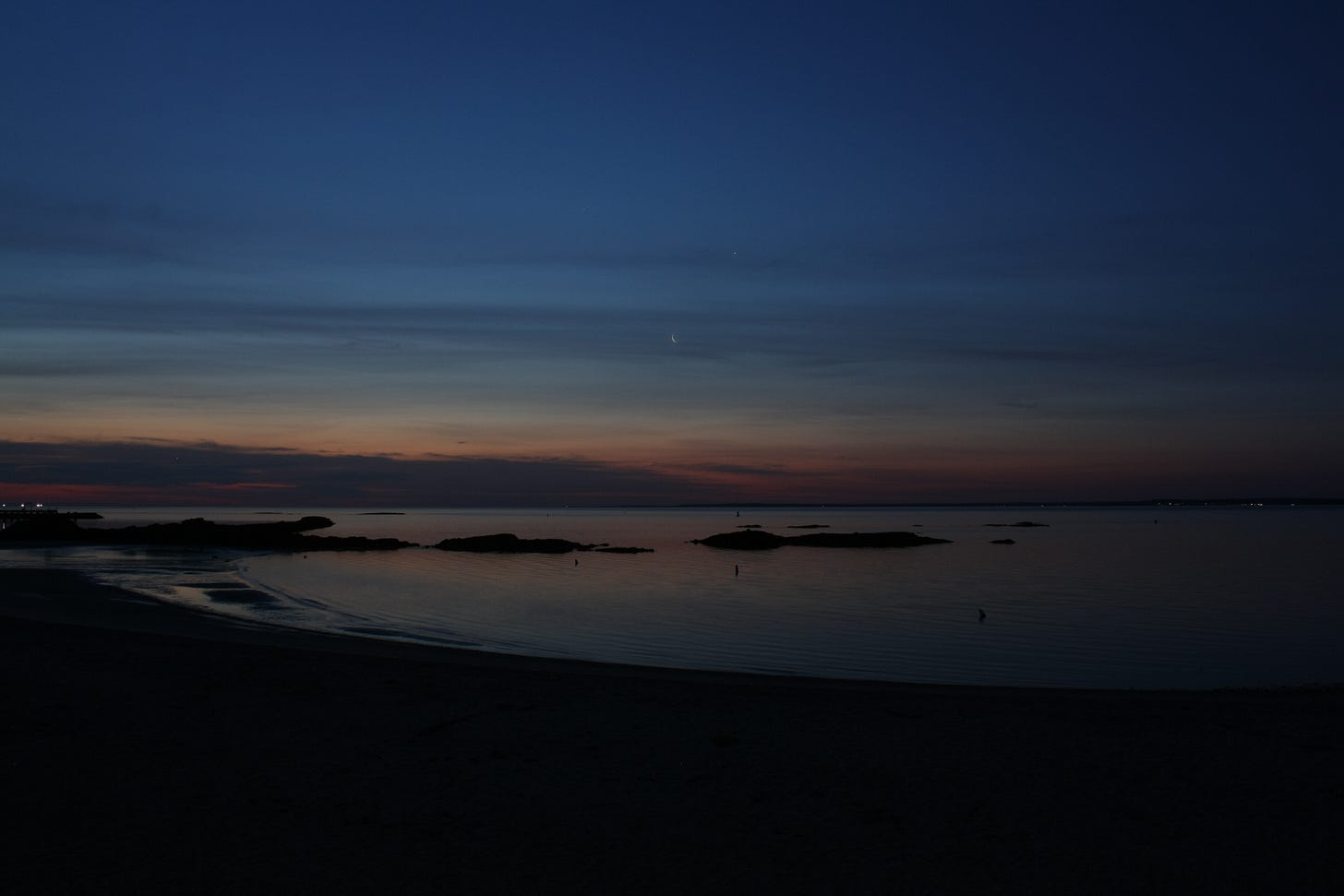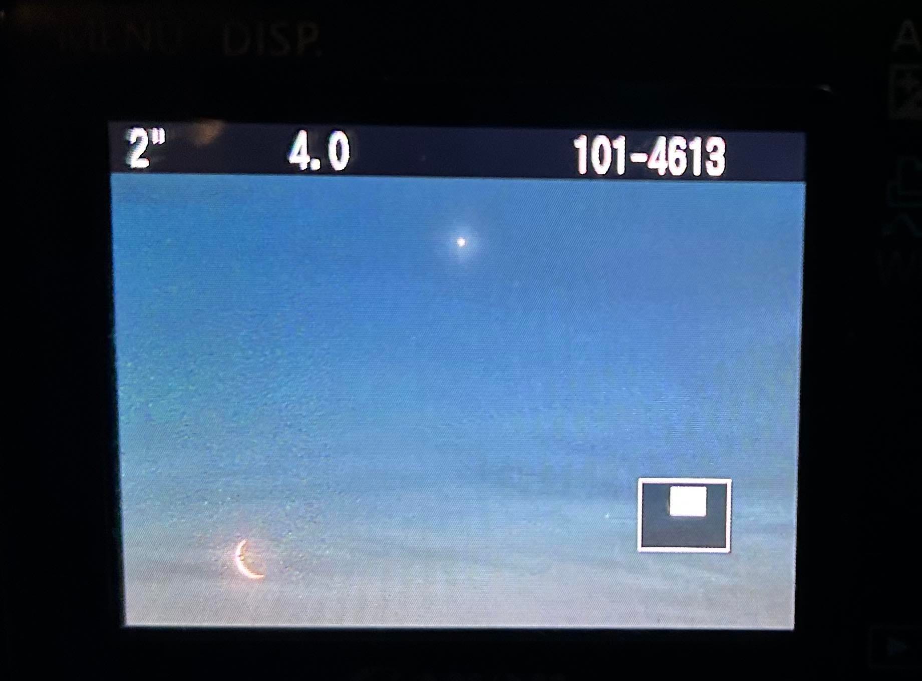 Saturn was hard to find and disappeared even to the camera as twilight brightened. Ironically, the photo where Saturn showed up best was the iPhone snap I took of the scene off the back screen of the Canon. I’ll see if I can add that later. (Edit: See last photo!)